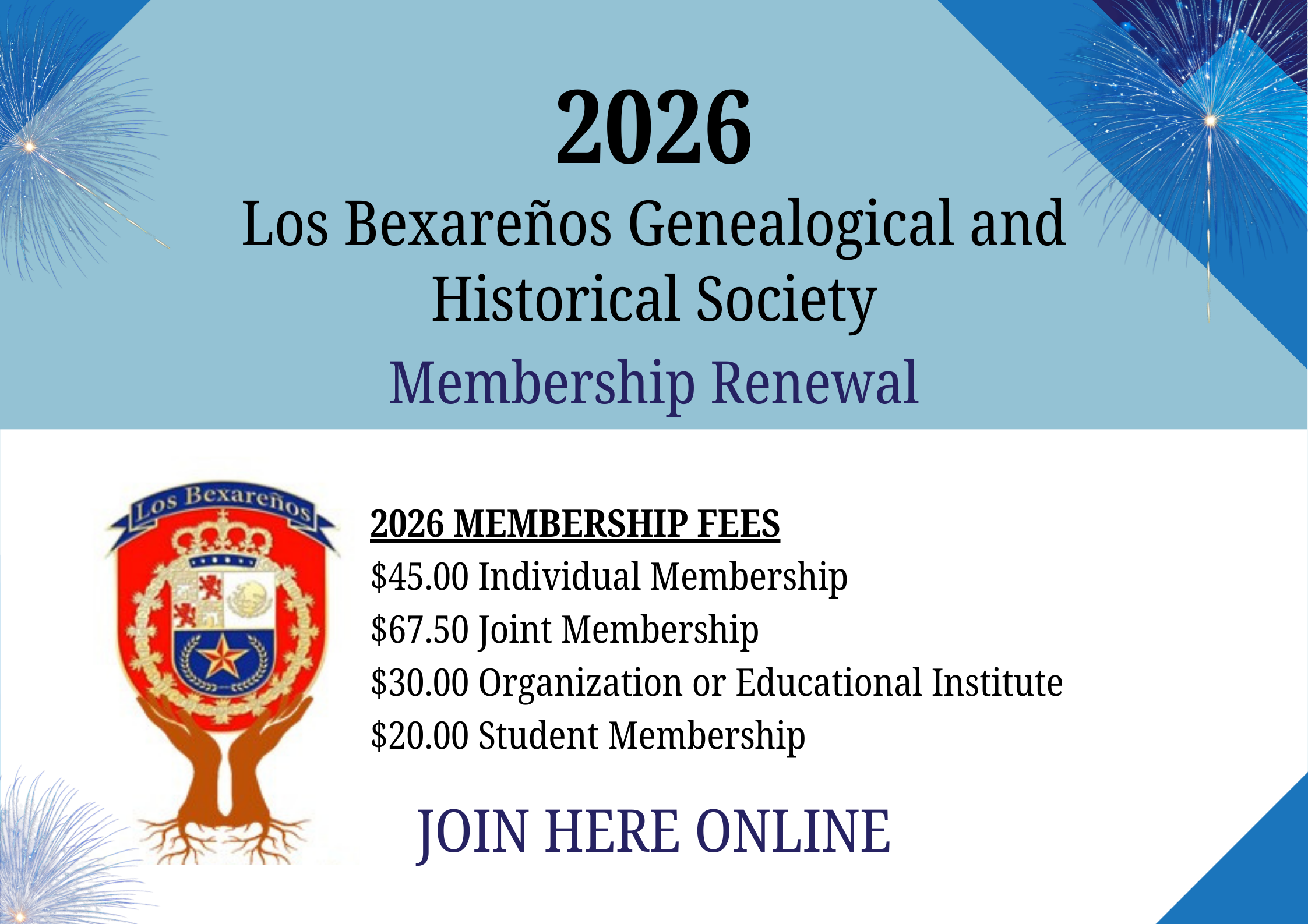 * Issue of Los Bexareños Yearly Register (Published and distributed Sep/Oct time frame).